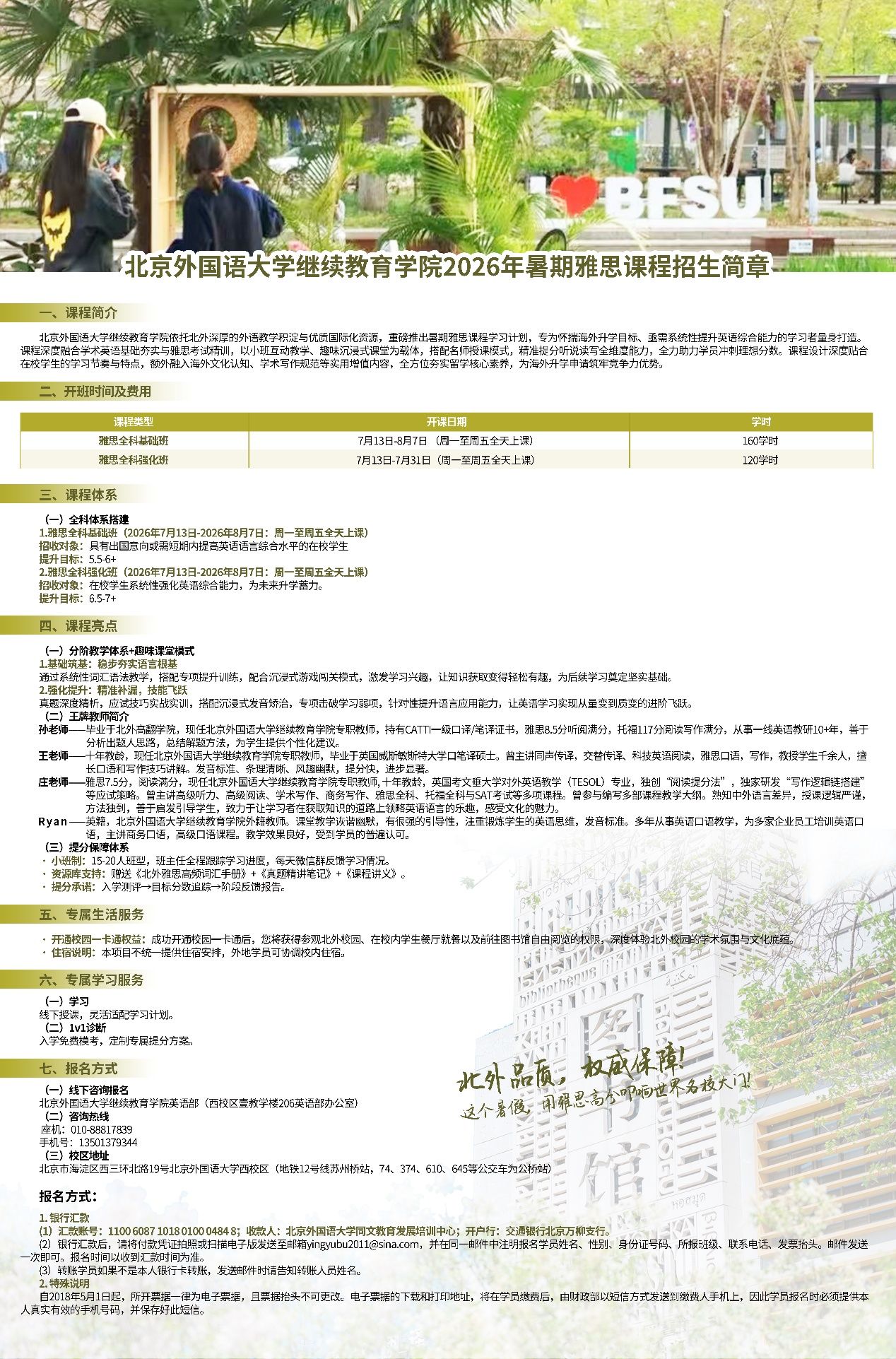北京外国语大学继续教育学院2026年暑期雅思课程招生简章