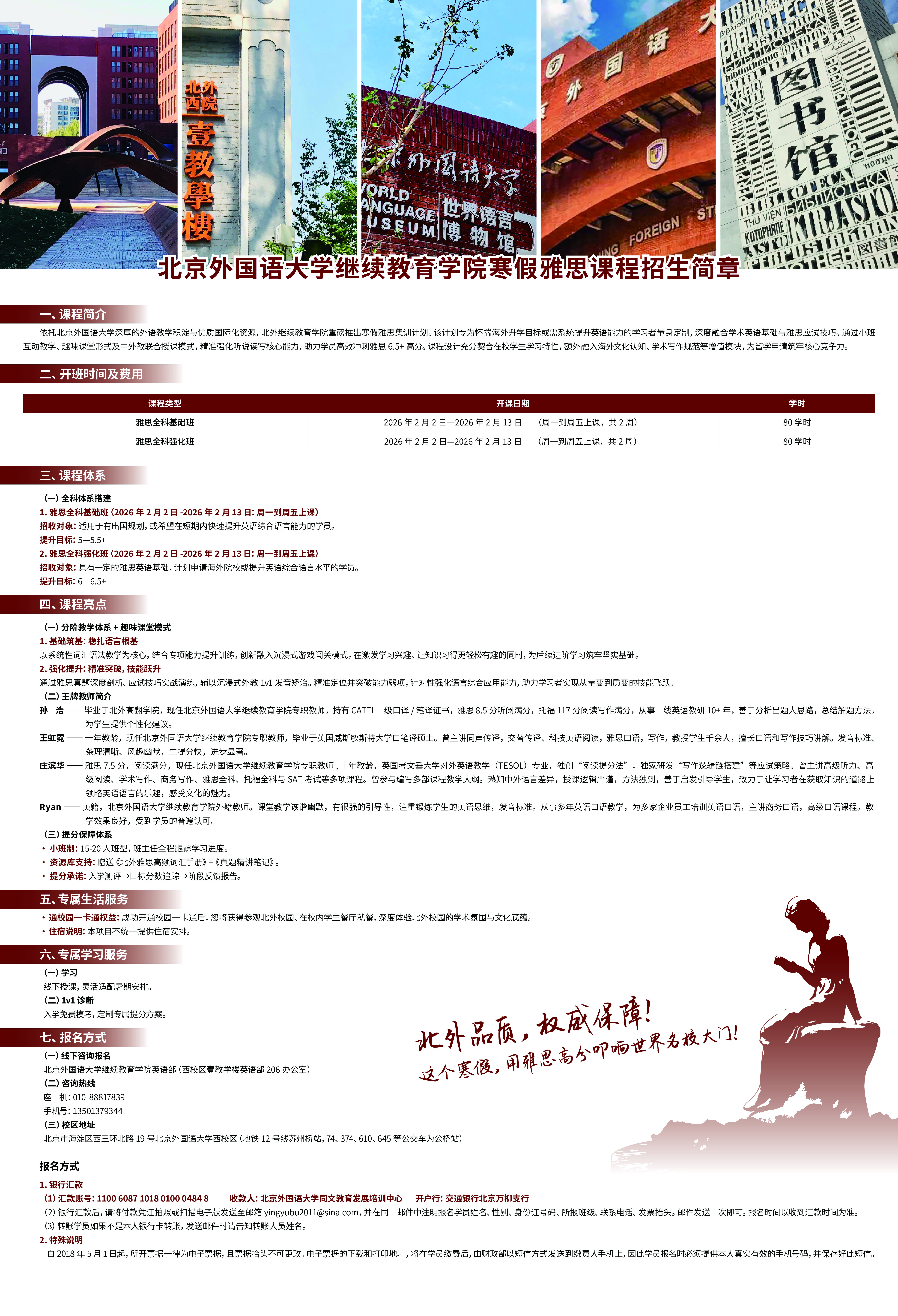 北京外国语大学继续教育学院寒假雅思课程招生简章